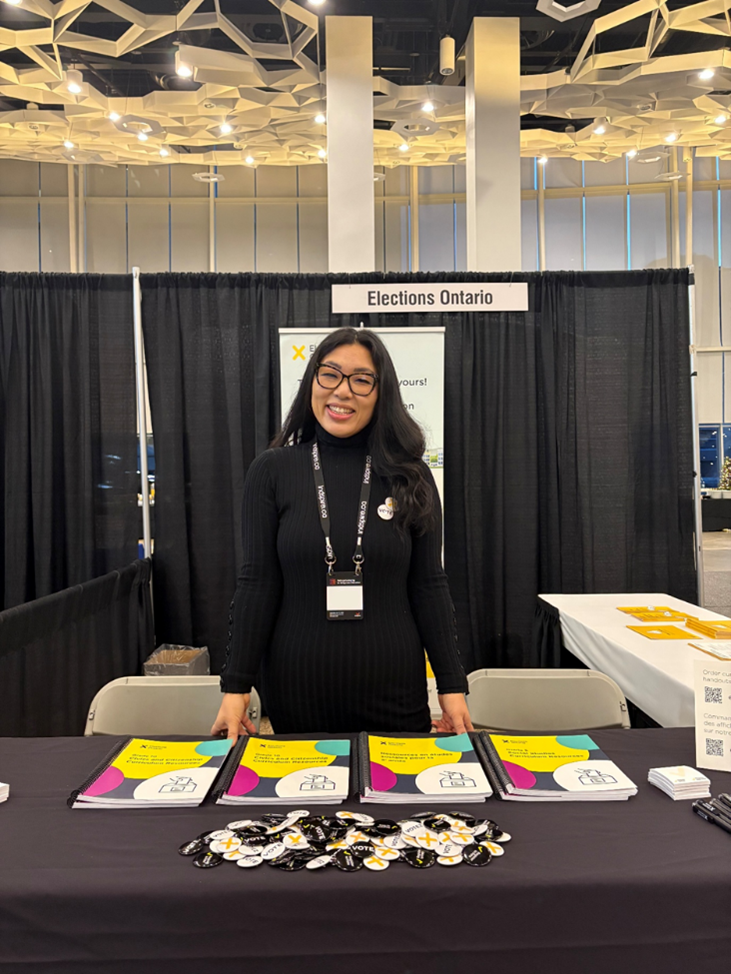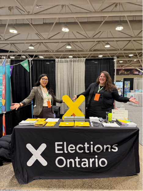 Lors de l’événement, l’équipe de sensibilisation a échangé avec les participants sur l’inscription des électeurs, l’accessibilité, le Registre ontarien des électeurs de demain, et a encouragé les participants à commander gratuitement nos ressources pédagogiques.