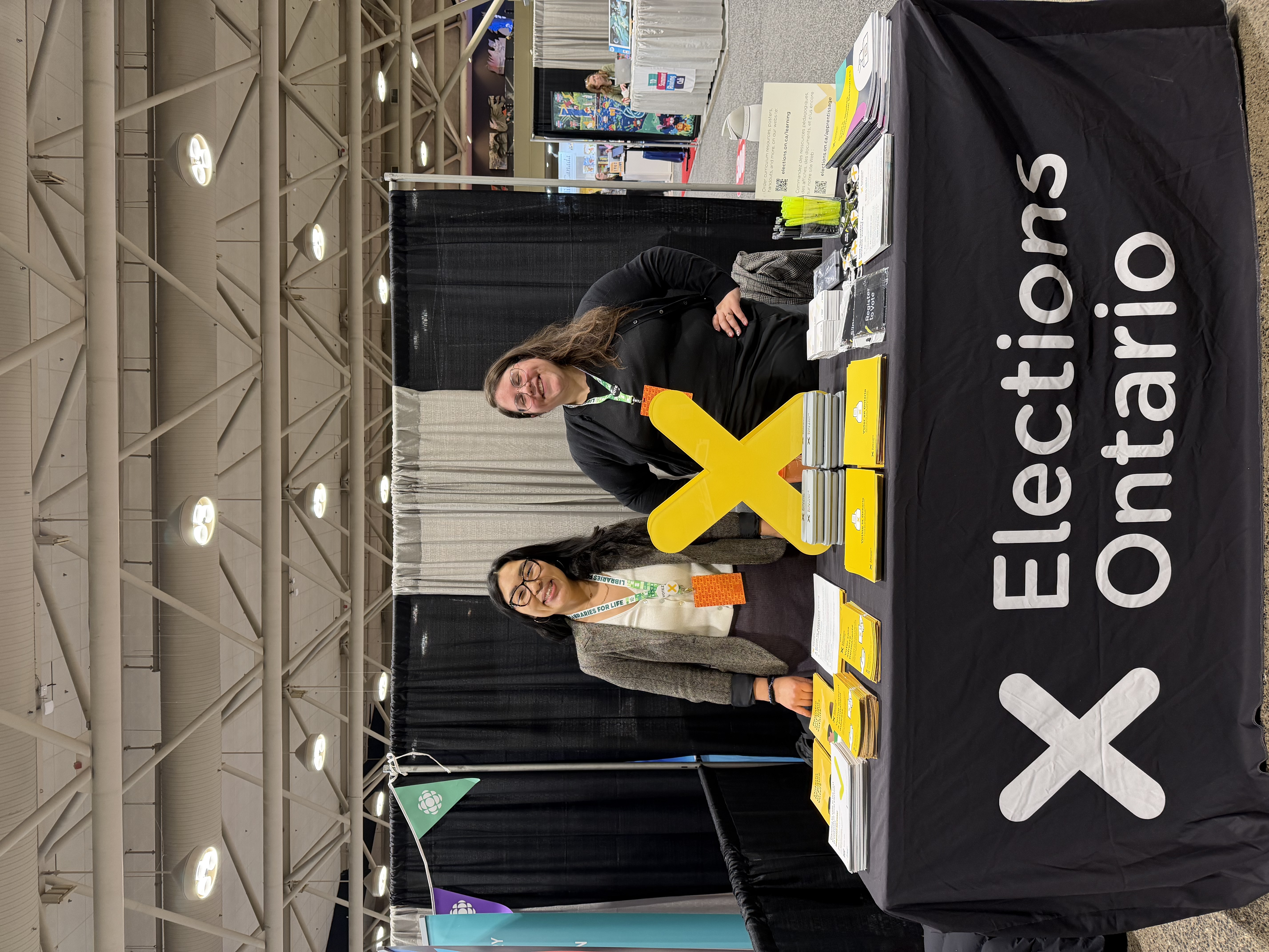Au cours de l'événement de deux jours, l'équipe de sensibilisation a discuté avec des milliers de participants de l'inscription des électeurs, du rôle d'Élections Ontario et a encouragé les bibliothèques à commander nos ressources éducatives. Nous avons également parlé aux participants du travail pendant les élections et de notre programme Jeunes employés électoraux.